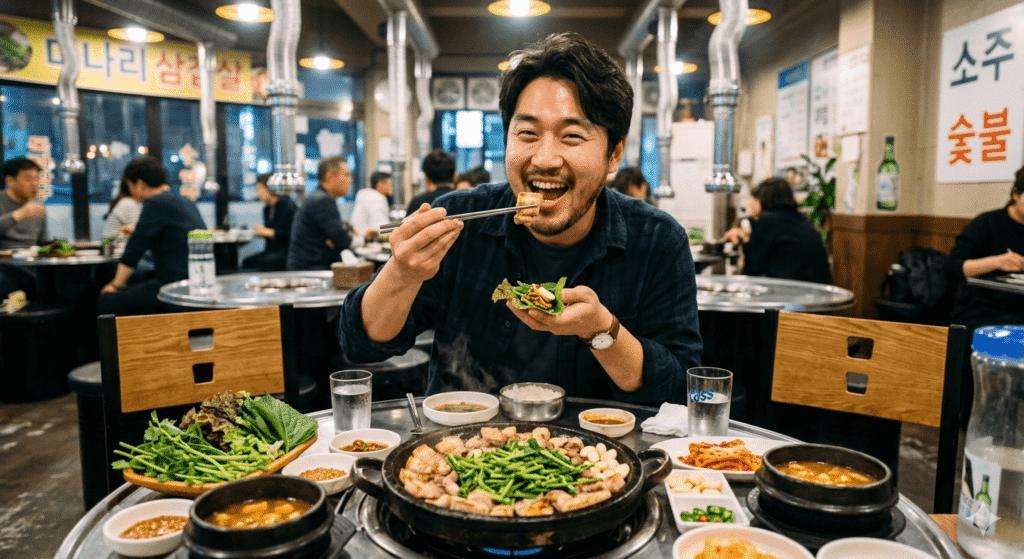 ✅ 미나리 + 삼겹살 가장 친숙한 조합이죠! 삼겹살의 기름진 지방을 미나리의 식이섬유와 엽록소가 중화시켜줘요. 고기 먹을 때 생채로 같이 드시면 느끼함도 잡고 해독도 되고 일석이조예요.