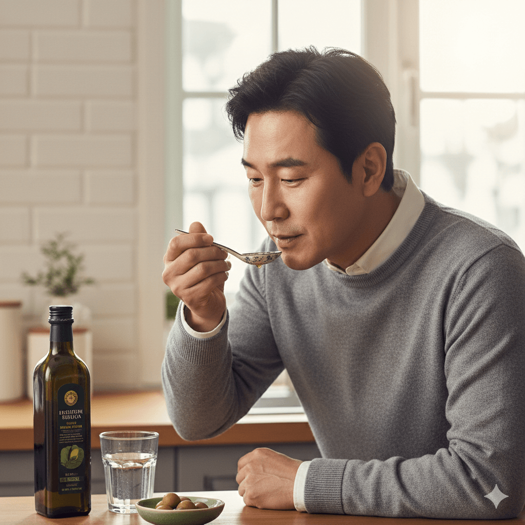 그런데 지난해 가을쯤이었나? 회사 선배 하나가 아침마다 올리브유를 먹는다는 거예요. 처음엔 “미쳤나?” 싶었죠. 기름을 그냥 먹다니! 하지만 그 선배가 3개월 만에 확 달라진 걸 보고는… 음~ 저도 한번 시도해봐야겠다 싶더라고요.